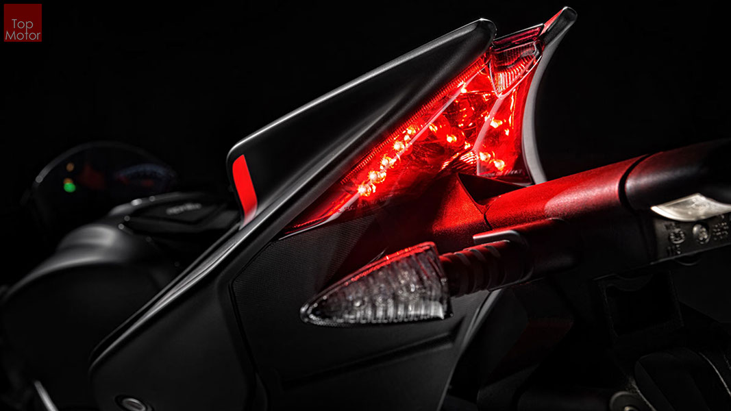 Fotos: © Piaggio & C. spa Aprilia RSV4 RR A Aprilia RSV4 RR representa a evolução mais importante e profunda já realizada neste modelo, que envolveu até o design, resultando numa combinação perfeita de forma e funcionalidade. O seu cuidadoso design levou à criação da moto desportiva mais compacta do mercado, com elementos técnicos que contribuem para o seu carácter desportivo, como é o caso do seu sofisticado quadro em alumínio de dupla trave. A parte frontal foi completamente redesenhada e oferece agora uma maior protecção, garantindo maior conforto em estrada, uma vez que diminui a pressão sobre o corpo e o capacete. Também o grupo óptico dianteiro, sofreu alterações e é agora composto por 3 elementos de formas mais modernas e com luz LED. Os retrovisores integram indicadores de mudança de direcção em LED, são mais aerodinâmicos e oferecem melhor visibilidade. Pela quantidade de alterações efectuadas na unidade motriz, quase que se pode considerar que se trata de um motor completamente novo, que está agora 1,5 kg mais leve e que oferece mais 16 cv. Tal como uma verdadeira moto de competição, RSV4 RR, permite efectuar uma série de regulações, sendo as mais importantes a possibilidade de regular a posição do motor no quadro, o ângulo do canhão da direcção, a articulação do braço oscilante e a altura do trem traseiro, para além da regulação da totalidade dos elementos que compõem as suspensões. A Aprilia melhorou ainda o seu já excepcional pacote de controlos dinâmicos APRC (Aprilia Preformance Ride Control) que de série na RSV4 RR inclui o ATC (Aprilia Traction Control) com 8 níveis de regulação da tracção controlado por intermédio de um joystick no guiador, o AWC (Aprilia Wheelie Control) que controla o levantamento da roda dianteira, possibilitando 3 níveis de regulação, o ALC (Aprilia Launch Control) sistema de auxilio ao arranque com 3 níveis de regulação e o AQS (Aprilia Quick Shift) a caixa de velocidades electrónica que permite passagens de caixa rápidas sem necessidade de largar o acelerador ou de usar a embraiagem. Para além do APRC, a RSV4 RR conta ainda com o sistema "Race ABS" desenvolvido pela Aprilia em colaboração com a Bosch por forma a garantir uma maior segurança em estrada assim com uma óptima performance em pista. Este sistema possui 3 níveis de regulação e pode ser desactivado. O sistema "Race ABS" serve de complemento ao sistema de travagem, que à frente é composto por duplo disco flutuante de 320 mm com pinça Brembo de 4 êmbolos e disco de 220 mm com pinça Brembo de 2 êmbolos na roda traseira. Na frente a suspensão utiliza uma forquilha invertida Ohlins de 43 mm e curso de 120 mm, enquanto na traseira temos duplo braço oscilante em alumínio, com mono-amortecedor Ohlins com "piggy-back" regulavel em pré-carga, comprimento, extensão e compressão, com sistema progressivo APS e curso de 130 mm. O motor é um 4 cilindros em V a 65º de 999 cc de refrigeração liquida que debita 201 vc às 13.000 rpm, que tem associada uma caixa de 6 velocidades. Para calçar a RSV4 RR a Aprilia optou por pneus 120/70 ZR 17 para a frente, e 200/55 ZR 17 para trás. O deposito tem capacidade para 18,5 litros e o peso total do conjunto é de 180 kg.