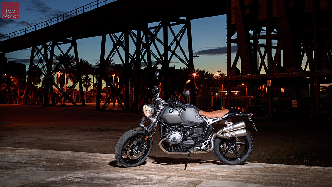 A R Nine T é uma moto para quem gosta de um estilo puro e original. Foi com este conceito que a BMW criou esta moto com um design bastante descontraído, mas que transmite ao condutor a sensação de pura liberdade. A R Nine T integra-se no conceito Scrambler, muito comum nos anos 1950 e 1970 e que tinham como principais características uma posição de condução relaxada, escapes bastante subidos e pneus de rasto fundo, que proporcionavam momentos de pura diversão aos seus condutores tanto em extensas estradas rurais como em condução fora de estrada, permitindo uma utilização bastante ampla. O conceito Scrambler, faz parte da própria história da BMW, tendo lançado em 1951 a BMW R68 que contava com o característico escape 2 em 1 bastante subido. A nova BMW R Nine T Scrambler vem reencarnar este espírito, de uma forma muito especial, pois possui tudo o que define este tipo de moto, com um ar bastante distinto criado para os adeptos de um estilo purista, reduzido ao essencial, aliado à tecnologia e qualidade da BMW, que de modo a corresponder aos desejos de muitos dos seus fãs, de poderem personalizar as suas motos, tem ao dispor uma série variada de acessórios originais que lhes permite criar motos únicas. Qualquer que seja o ângulo, que se olha, o design da R Nine T define-se por uma mistura de elementos clássicos e modernos, o farol na tradicional forma redonda e o velocímetro analógico são dois bons exemplos de elementos que representam o estilo clássico e minimalista. A R Nine T Scrambler é alimentada por um motor boxer bi-cilindrico de 1170 cc a quatro tempos de refrigeração ar/óleo, com duas árvores de cames e 4 válvulas por cilindro com 110 cv de potência, injecção electrónica capaz de atingir velocidades superiores a 200 km/h. a transmissão e feita por caixa de 6 velocidade com veio de sincronização e engrenagem helicoidal. A suspensão dianteira é do tipo forquilha telescópica invertida com bainhas de 46 mm de diâmetro e curso de 120 mm, enquanto a traseira é formada pelo conjunto mono braço em alumínio com amortecedor central e afinação hidráulica da pré-carga da mola por manipulo e com um curso de 135 mm. A travagem é assegurada por dois discos flutuantes de 320 mm e pinça radial de 4 êmbolos à frente, e disco unico de 265 mm e pinça flutuante de duplo embolo e com ABS de série. As jantes são de raios com pneus 120/70 ZR 17 à frente e 180/70 ZR 17 atrás. O depósito tem capacidade para 18 litro e o peso total do conjunto é de 222 kg.