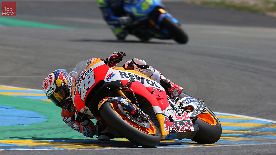 Jorge Lorenzo venceu o GP de França na categoria MotoGP, disputado no celebre circuito de Le Mans. Tendo dominado toda a corrida, o piloto espanhol da Yamaha que partiu da pole position foi ganhando avanço sobre os restantes pilotos, volta após volta, cortando a meta com mais de 10 segundos sobre o segundo classificado, o seu companheiro de equipe Valentino Rossi, que apesar de ter partido da sétima posição e ter realizado um mau arranque, conseguiu recuperar e terminar no segundo lugar do pódio. No terceiro lugar ficou outro espanhol, Maverick Viñales que conseguiu levar a Suzuki a um lugar do pódio, coisa que não acontecia desde 2010. Para a Ducati esta foi mais uma corrida para esquecer, pese embora as duas motos tenham rodado nos lugares do pódio, logo atrás de Lorenzo, durante a fase inicial da corrida, foram novamente vitimas de quedas, com Andrea Iannone a cair quando faltavam 17 voltas para o final e Andrea Dovioso 4 voltas mais tarde na companhia de Marc Marquez, que terminaria na ultima posição, mas que mesmo assim pontuou uma vez que devido ao elevado numero de quedas que levaram a desistências todos os pilotos que terminaram a corrida acabaram por pontuar. Lorenzo é agora o novo lider do mundial, trocando de posição com Marquez. Na categoria Moto2 o vencedor foi Alex Rins. O piloto espanhol que partiu da segunda posição da grelha, ao lado de Thomas Luthi detentor da pole position, foi alterado a liderança com o suíço que acabou por perder também a segunda posição para o o italiano Simone Corsi que havia partido da terceira posição da grelha. Miguel Oliveira, que partiu da 14 posição, fez o seu melhor resultado até ao momento na sua estreia no Moto2, ao terminar a corrida em 10º lugar, mostrando assim que a sua adaptação à nova categoria esta a ser feita passo a passo, e que está a correr bem. Na Moto3 a vitória foi para Brad Binder, Ficando romano Fenati em segundo e Jorge Navarro em terceiro.