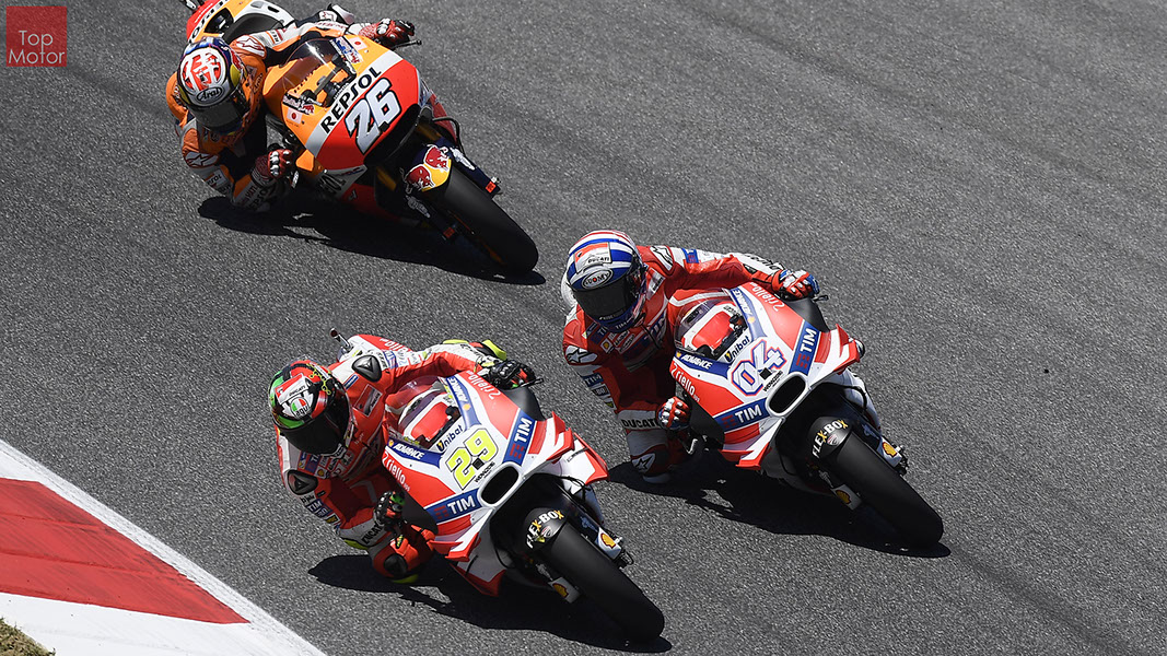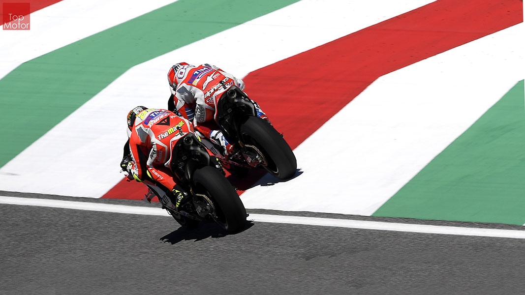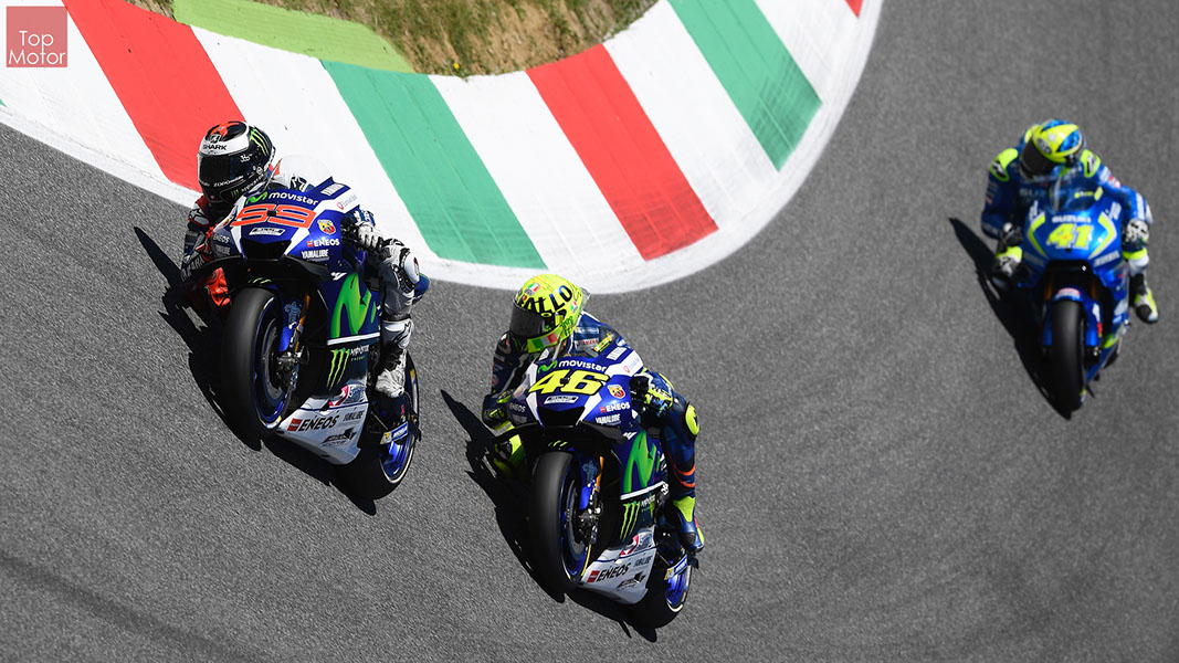Fotos: © Yamaha Motor Europe NV / © Honda Motor Europe Ltd. / © Ducati Motor Holding spa / © Leopard S.A. / © Suzuki Racing / © Piaggio & C. spa MotoGP - GP de Itália Uma enorme legião de fãs vestidos de amarelo, invadiu o circuito de Mugello, para ver e apoia o seu ídolo, "Il Dottore", na esperança de assistir a uma grande prestação frente ao seu publico. O GP de Itália, sexta prova do mundial, teve talvez a corrida mais empolgante do campeonato até ao momento, com Valentino Rossi a sair da pole e a dar ainda pais esperança aos "tifosi", uma vez que na presente temporada todos os detentores da pole position acabaram por vencer as corridas. Contudo no arranque para a corrida, Jorge Lorenzo, que estava na 5ª posição da grelha, surpreendeu tudo e todos, ao arrancar como um foguete, saltando para a liderança da corrida seguido por Rossi e Espargó e com Iannone e Viñales, que estavam ao lado de Rossi na primeira fila da grelha, a perderem varias posições depois de um mau arranque de ambos. Marquez foi recuperando terreno, acabando por ultrapassar Espargó, ficando na terceira posição atrás das duas Yamaha, que rodavam bem coladas na frente, com Rossi à espera do momento oportuno para chegar à liderança. Contudo na 8ª volta, um enorme balde de agua fria caiu sobre o piloto italiano e a enorme massa amarela espalhada ao longo de todo o percurso de Mugello, quando o motor da Yamaha M1 colapsou obrigando Rossi a abandonar a corrida. Iniciou-se então um duelo titânico entre os dois pilotos espanhóis, com Marquez a tentar por diversas vezes assumir o comando da corrida mas sem conseguir ter sucesso, até que na ultima volta conseguiu finalmente chegar ao comando, perdendo-o imediatamente a seguir e para o recuperar de novo após um excelente momento de pilotagem sobre sobre o piloto da Yamaha e parecia ter a vitória garantida. Mas Lorenzo não se deu por vencido saindo muito bem da ultima curva, aproveitou a aspiração e o melhor desempenho em aceleração das Yamaha em relação às Honda, para passar Marques mesmo sobre a linha de meta e vencer a corrida com uma vantagem de apenas 19 milésimos de segundo. A Ducati conseguiu garantir o terceiro lugar do pódio, após uma excelente recuperação de Iannone, que também travou uma luta bastante interessante com Dani Pedrosa e o seu colega de equipe Doviozioso, que entretanto ficou para trás. A corrida de Moto2 teve um inicio atribulado, com carios pilotos a sofrerem quedas, sendo a mais grave a de Xavi Vierge, que levou à interrupção da corrida após mostragem da bandeira vermelha. A paragem demorou algum tempo e o reatamento da corrida fez-se com os pilotos a sair da grelha de partida das posições que ocupavam no momento da interrupção para disputarem apenas 10 voltas. Johann Zarco, Lorenzo Baldassarri e Thomas Luthi foram protagonistas de um grande espectáculo, com os dois primeiros a discutindo a vitória até ao final com o piloto francês a levar a melhor, vencendo com apenas 30 milésimos de segundo, Luthi acabaria a corrida na quarta posição, sendo o ultimo lugar do pódio entregue a Sam Lowes. Miguel Oliveira acabou por beneficiar com a interrupção da corrida, pois partiu da 21 posição e rodava na 16ª posição, mas com algum atraso no momento da interrupção. No final da corrida conseguiu pontuar ao terminar na 13ª posição logo à frente de Danny Kent, seu companheiro de equipe. Na Moto3, Brad Binder venceu a sua terceira corrida consecutiva, com Fabio Di Giannantonio a terminar em segundo e Francesco Bagnaia em terceiro.