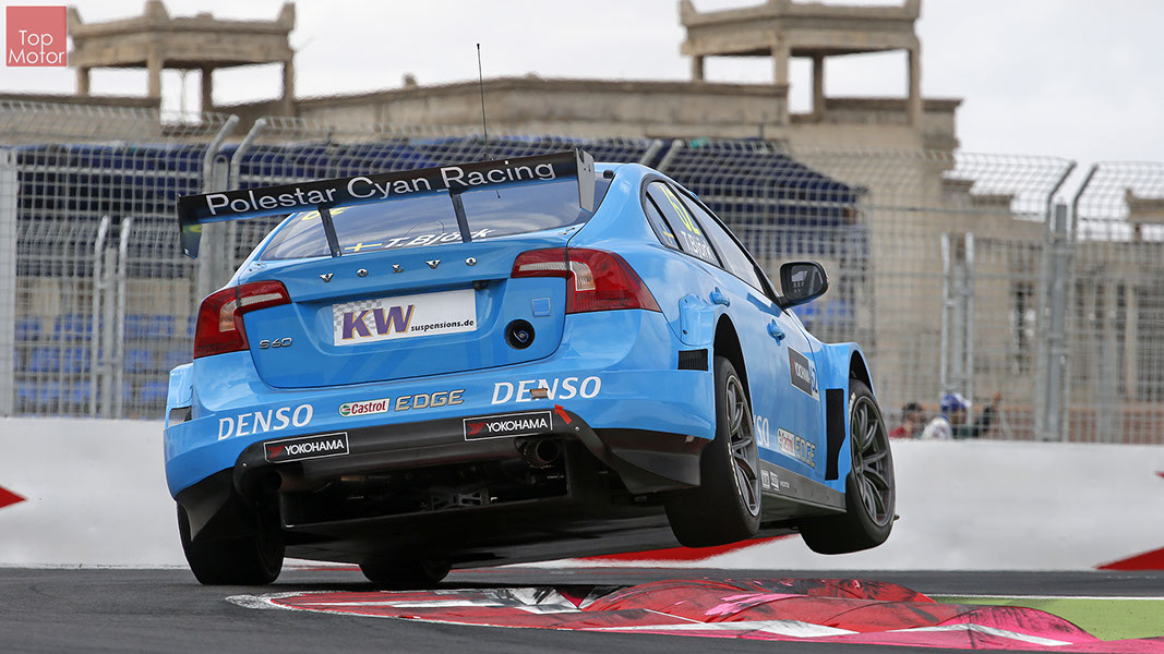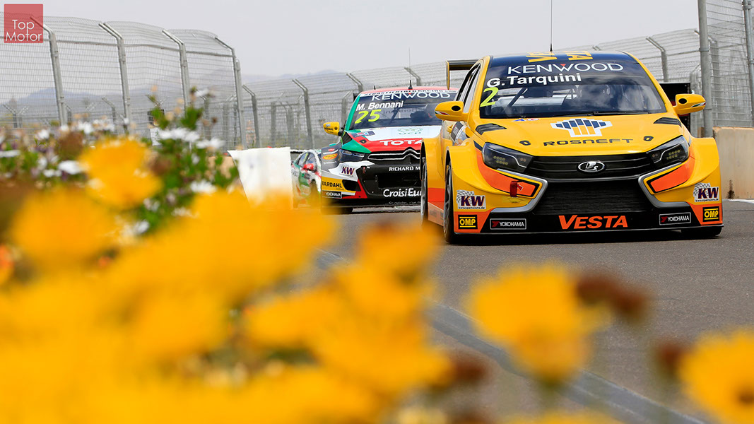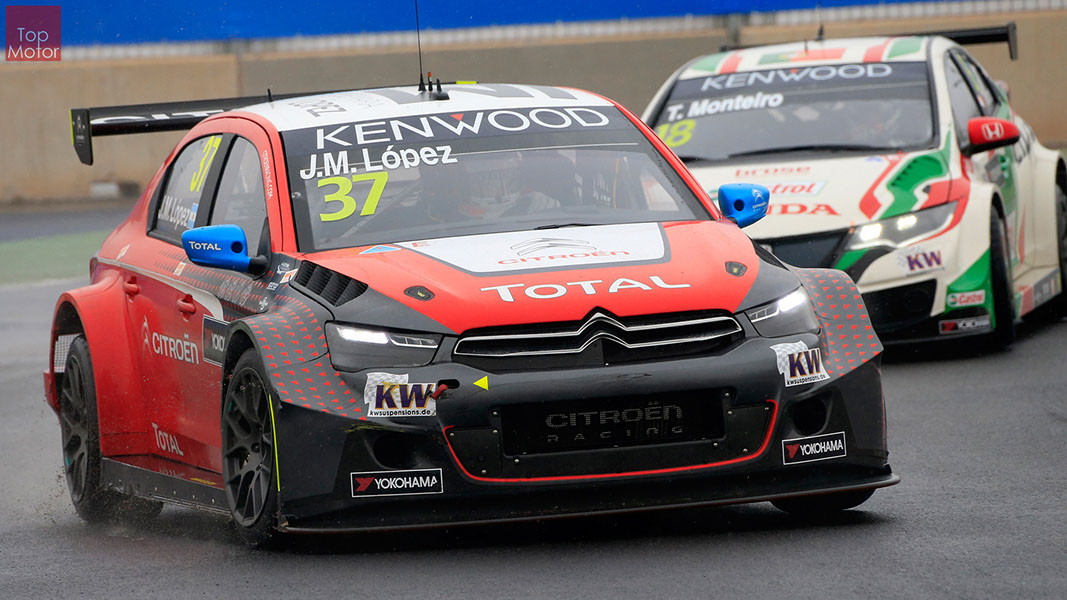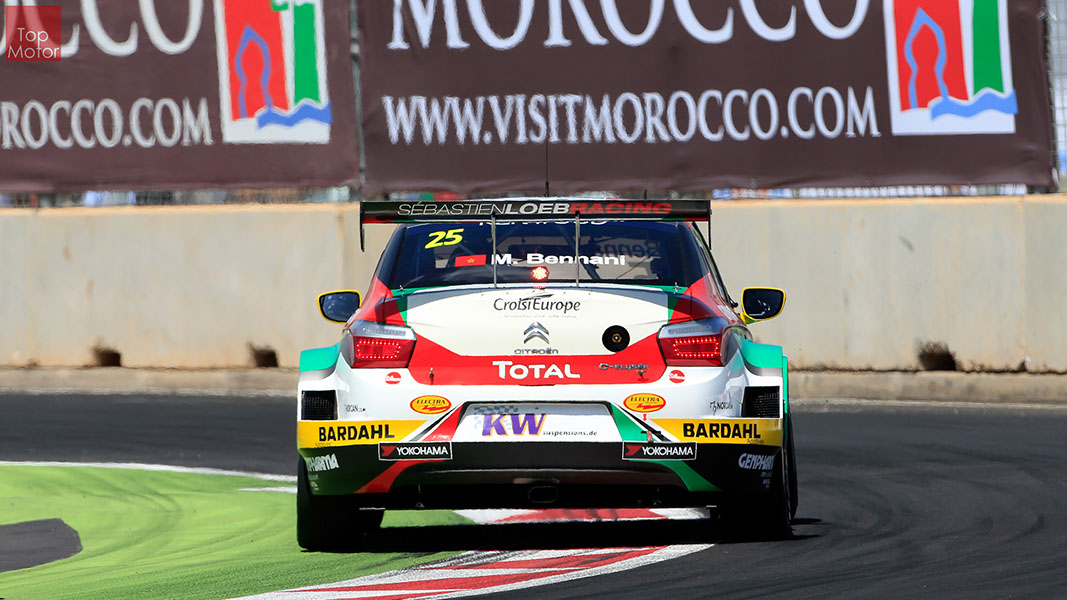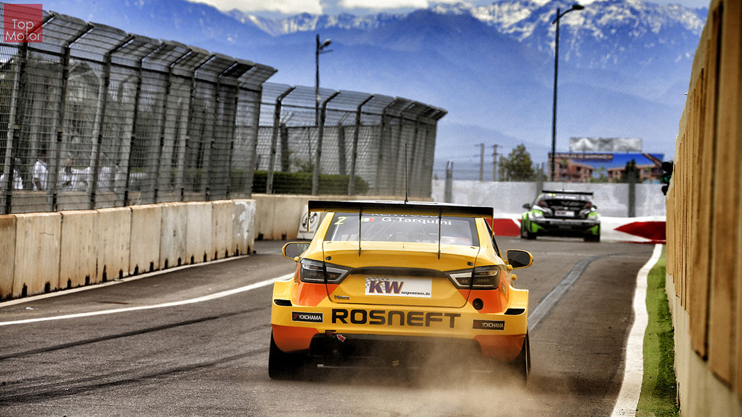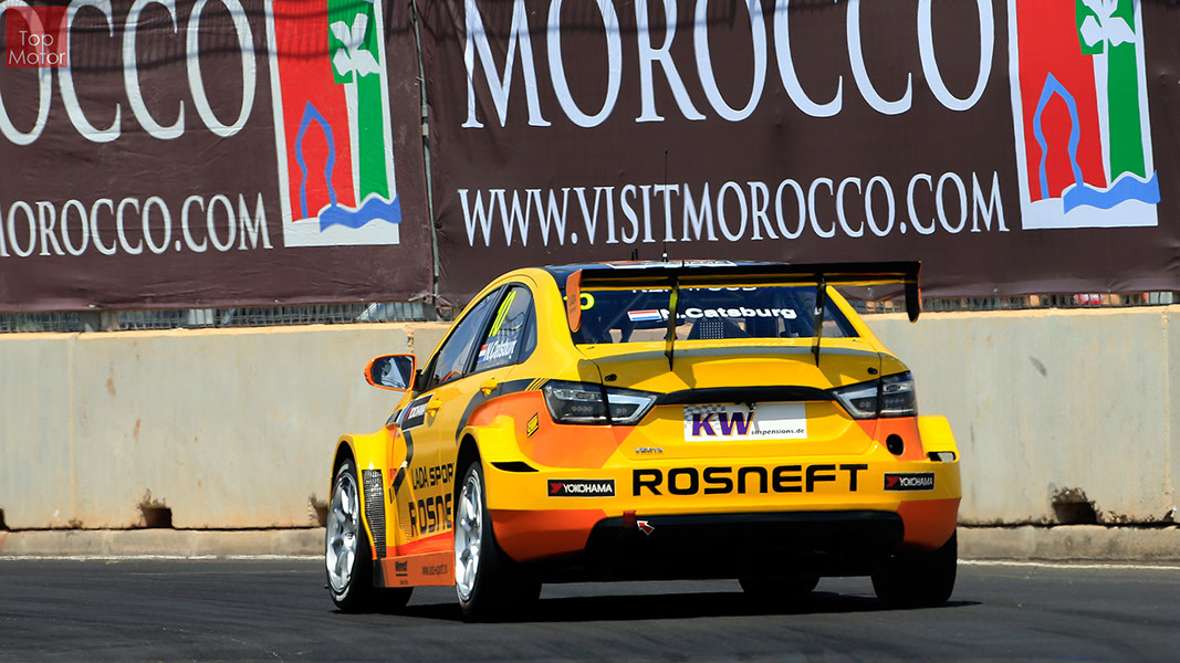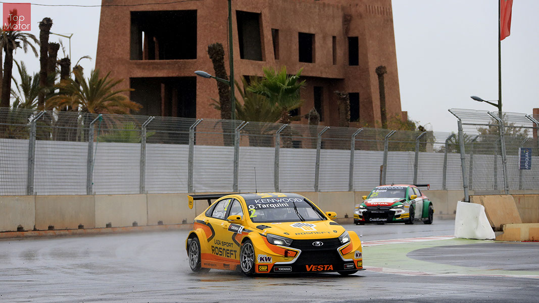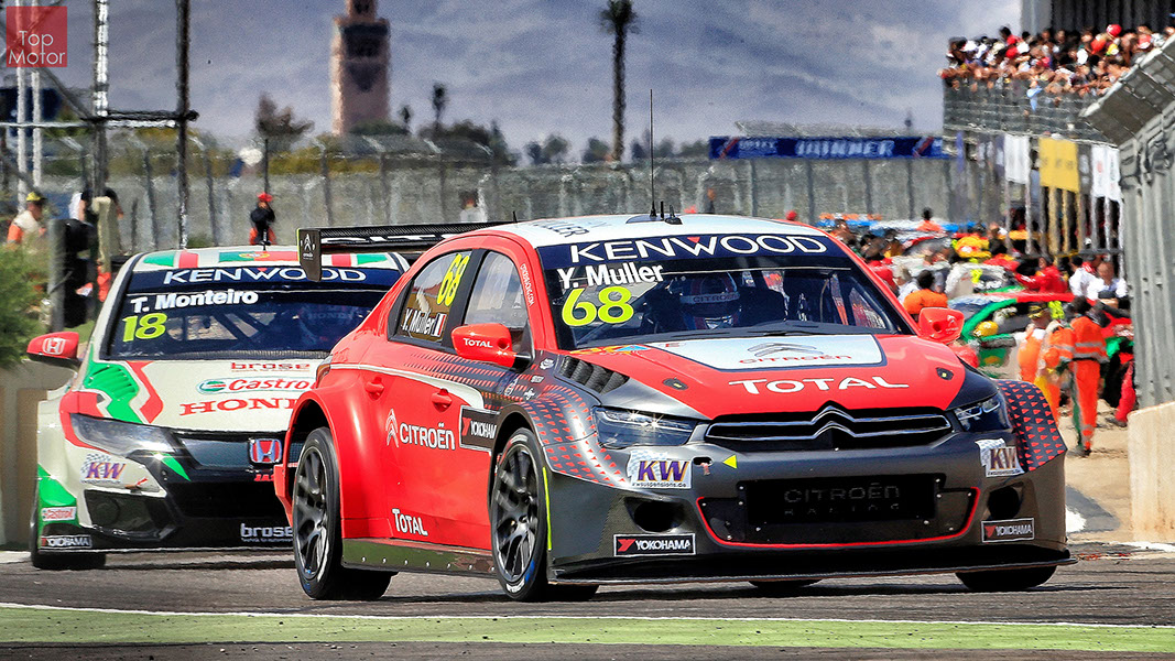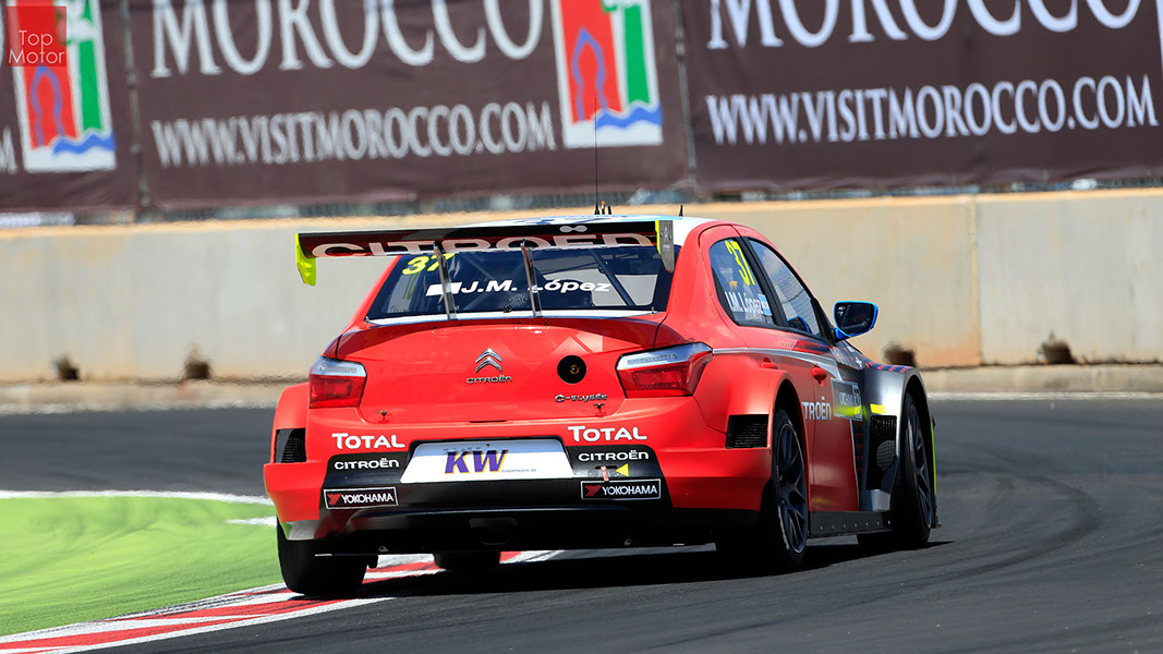 Fotos: © Honda Motor Europe Ltd. / © Citroën Racing / © Lada Sport / © Polestar WTCC - Corrida de Marrocos  A Honda dominou a qualificação da corrida de Marrocos, tendo conseguido os três melhores tempos, com Huff a ser o melhor seguido de Michelisz e Tiago Monteiro. o quarto melhor tempo seria para José-Maria Lopez em Citroën e Nick Catsburg em Lada fechava o top 5. Para a primeira corrida, e pela regra da inversão dos 10 melhores tempos, partia da pole position o Chevrolet de James Thompson, que ao seu lado tinha o Lada de Hugo Valente. Na segunda linha encontravam-se o Volvo de Thed Bjork e o Chevrolet de Tom Coronel. Na terceira linha surgia o Citroën de Yvan Muller e o Lada de Nick Catsberg. José-Maria Lopez e Tiago Monteiro ocupavam a quinta linha, enquanto Michelisz e Huff compunham a sexta linha da grelha. Thompson assumiu a liderança após a partida, seguido por Valente, Coronel e Bjork, mas na curva 3 Thompson sofreu um toque de Valente que o atirou para fora da pista. Na mesma volta também Bjork e Catsburg se envolveram num acidente que os para fora da pista. Hugo Valente assumiu a liderança, seguido por Corornel e Lopez, até ao momento em que recebeu ordem para passar pelas boxes para cumprir uma penalização por ter causado o despiste de Thompson. Coronel assumiu então a liderança seguido de Lopez e Muller, com Monteiro na quarta posição. A partir daqui a corrida pautou-se por Coronel a tentar defender-se de Lopez até ao final da corrida, num circuito onde não é fácil ultrapassar. No final Coronel saiu vencedor, Lopez foi segundo, Muller terceiro, Tiago Monteiro foi quarto e Michelisz fechou o top 5. Para a corrida principal a ser disputada debaixo de chuva, a grelha de partida já era constituída pela ordem dos tempos de qualificação com os três Honda a saírem das três primeiras posições, seguidos pelos dois Citroën da equipe oficial. Os Honda arrancaram bem conseguindo manter as suas posições, no entanto, Tiago Monteiro viria a ser ultrapassado por José-Maria Lopez ainda durante a primeira volta. O piloto português não baixou os braços e continuou a pressionar o argentino, tendo conseguido recuperar a terceira posição na quinta volta após um erro de Lopez que o forçou a fazer uma trajectória de curva mais larga aproveitando Monteiro para o ultrapassar. Daqui em diante a luta pelos lugares dianteiros tornou-se algo desinteressante com os pilotos mais preocupados em assegurar os lugares e a garantir os pontos, não arriscando muito devido ao piso molhado, estando no entanto Lopez sempre à espreita de uma oportunidade de atacar Monteiro, tendo intensificado as suas tentativas nas voltas finais. As disputas mais interessantes centraram-se nos restantes lugares pontuáveis. A corrida terminou com a Honda a conseguir fazer o 1,2,3 com Huff na primeira posição, Michelisz na segunda e tiago Monteiro a garantir o terceiro lugar do pódio. Lopez terminou e quarto e Muller fechou o top 5.