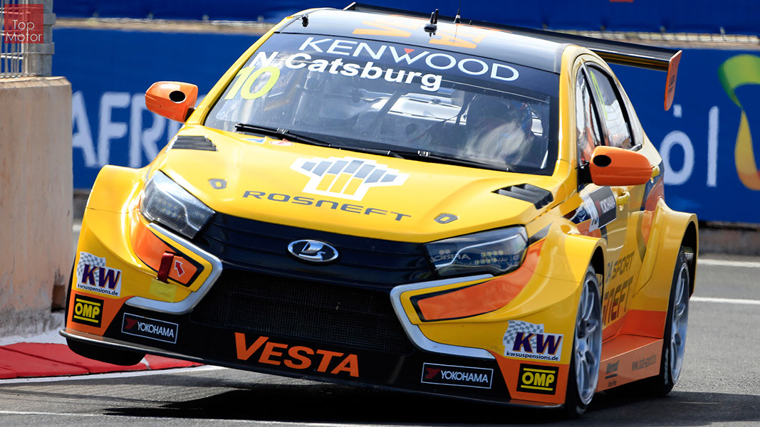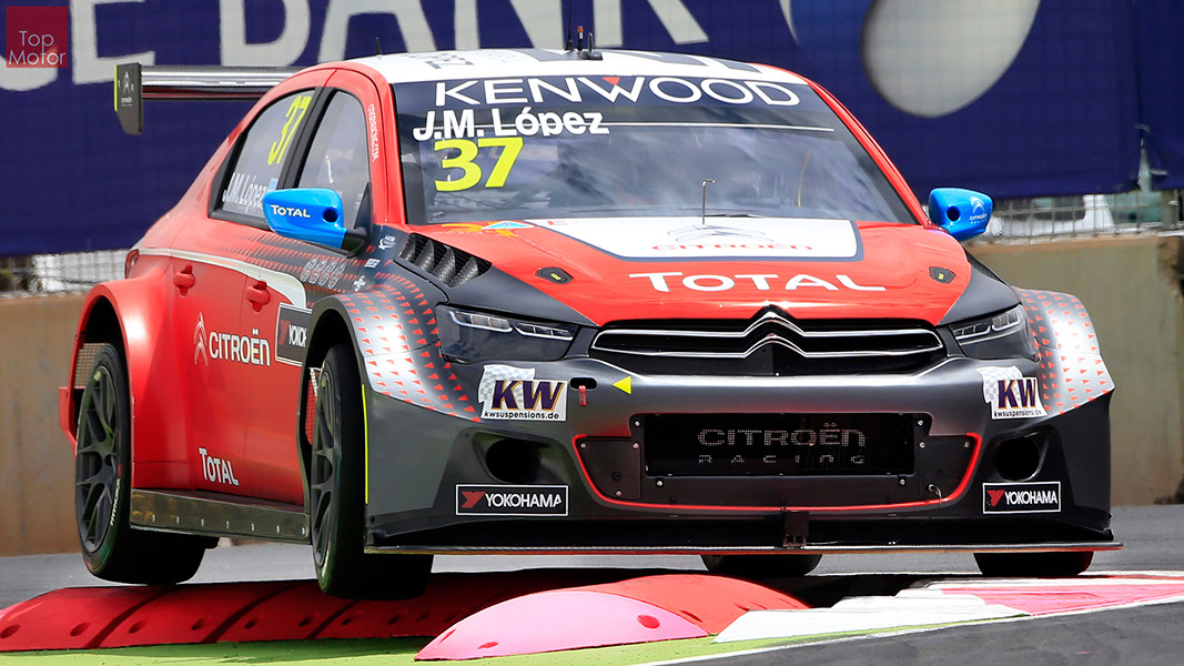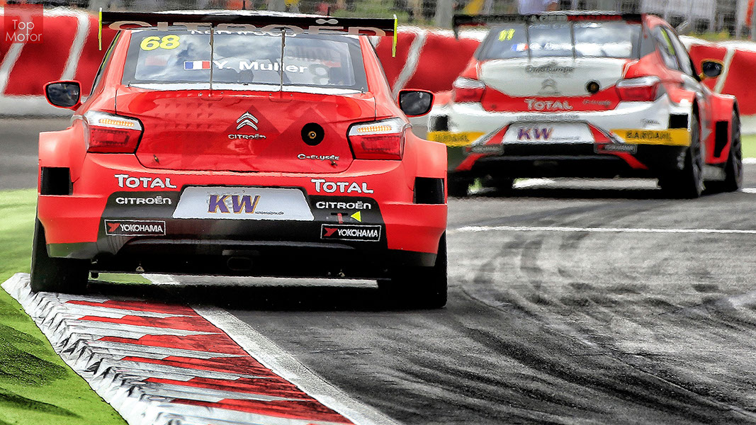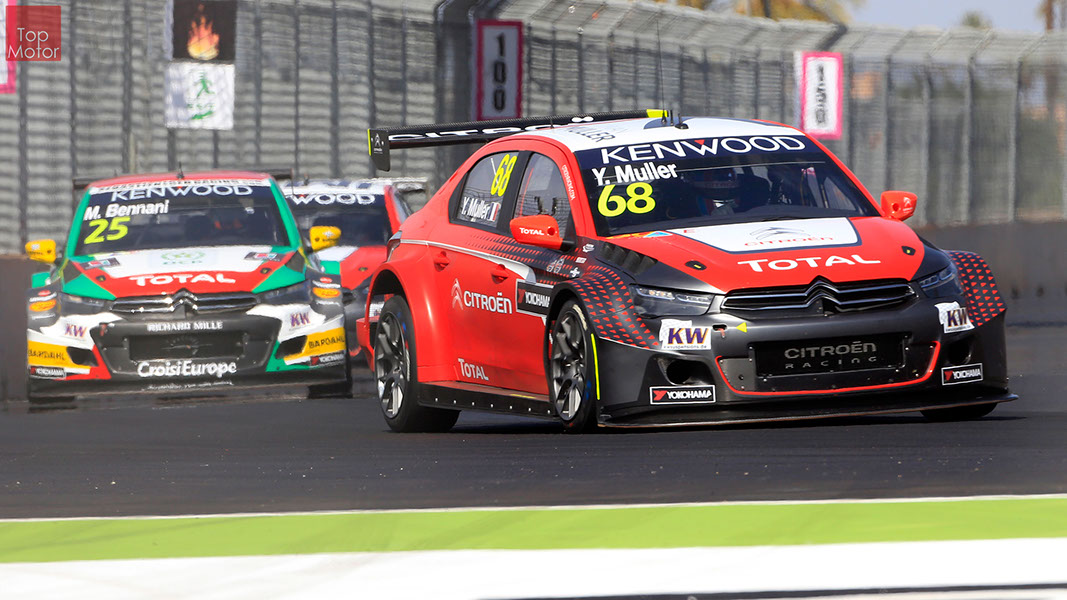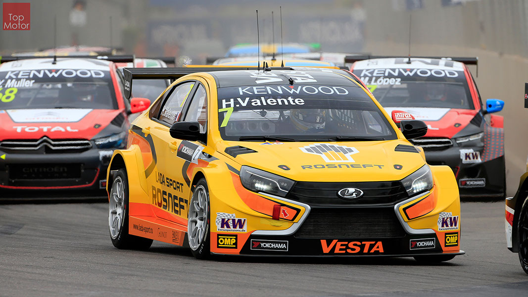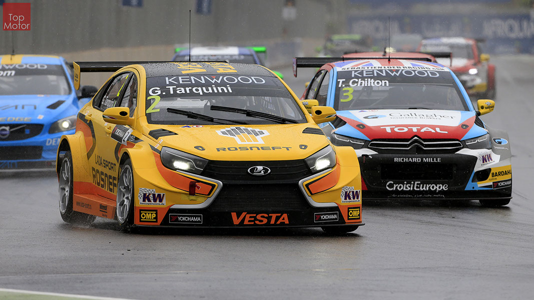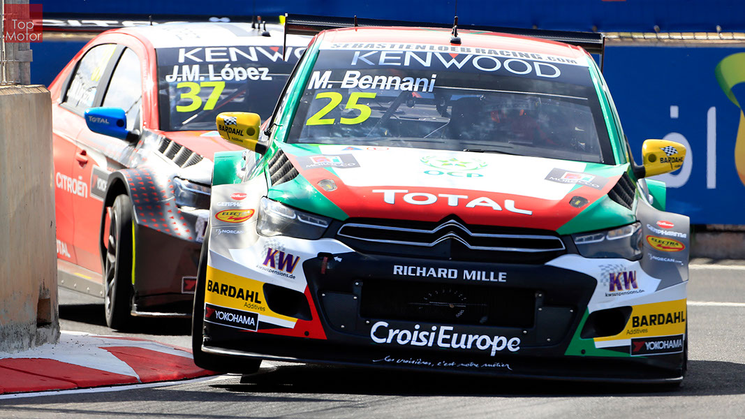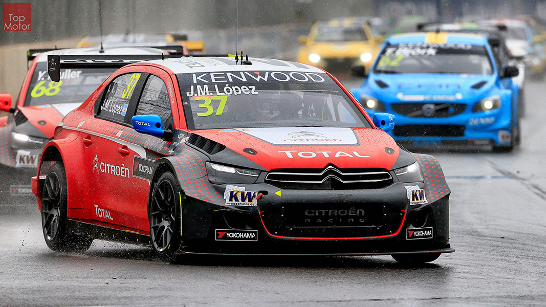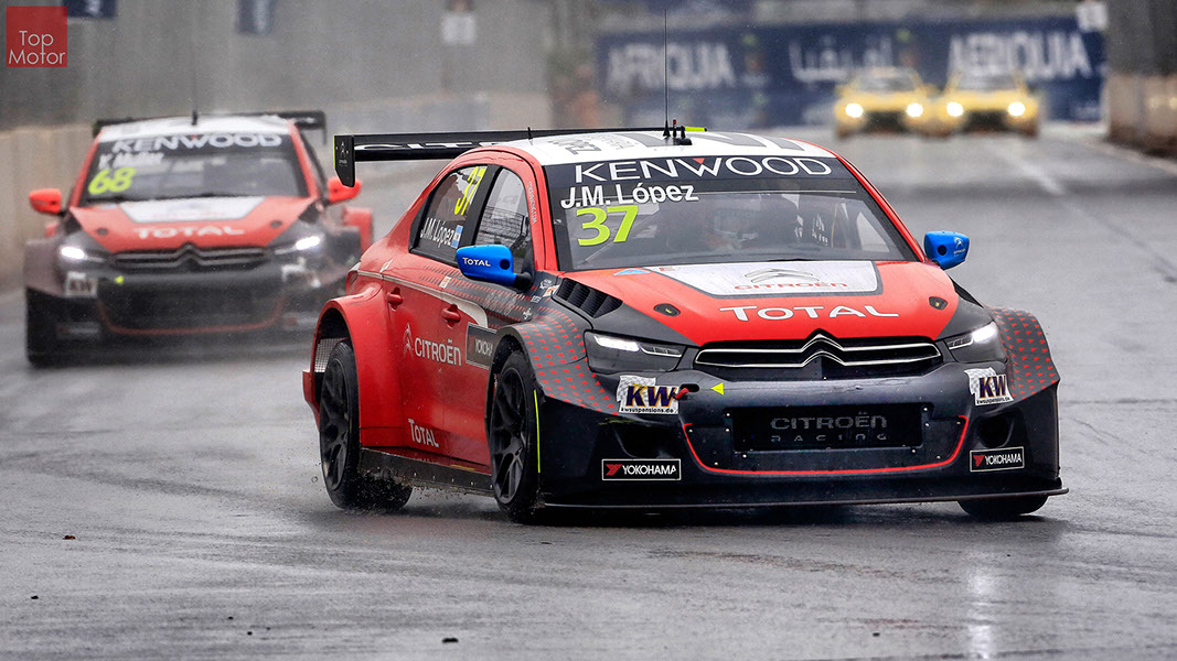 Fotos: © Honda Motor Europe Ltd. / © Citroën Racing / © Lada Sport / © Polestar WTCC - Corrida de Marrocos  A Honda dominou a qualificação da corrida de Marrocos, tendo conseguido os três melhores tempos, com Huff a ser o melhor seguido de Michelisz e Tiago Monteiro. o quarto melhor tempo seria para José-Maria Lopez em Citroën e Nick Catsburg em Lada fechava o top 5. Para a primeira corrida, e pela regra da inversão dos 10 melhores tempos, partia da pole position o Chevrolet de James Thompson, que ao seu lado tinha o Lada de Hugo Valente. Na segunda linha encontravam-se o Volvo de Thed Bjork e o Chevrolet de Tom Coronel. Na terceira linha surgia o Citroën de Yvan Muller e o Lada de Nick Catsberg. José-Maria Lopez e Tiago Monteiro ocupavam a quinta linha, enquanto Michelisz e Huff compunham a sexta linha da grelha. Thompson assumiu a liderança após a partida, seguido por Valente, Coronel e Bjork, mas na curva 3 Thompson sofreu um toque de Valente que o atirou para fora da pista. Na mesma volta também Bjork e Catsburg se envolveram num acidente que os para fora da pista. Hugo Valente assumiu a liderança, seguido por Corornel e Lopez, até ao momento em que recebeu ordem para passar pelas boxes para cumprir uma penalização por ter causado o despiste de Thompson. Coronel assumiu então a liderança seguido de Lopez e Muller, com Monteiro na quarta posição. A partir daqui a corrida pautou-se por Coronel a tentar defender-se de Lopez até ao final da corrida, num circuito onde não é fácil ultrapassar. No final Coronel saiu vencedor, Lopez foi segundo, Muller terceiro, Tiago Monteiro foi quarto e Michelisz fechou o top 5. Para a corrida principal a ser disputada debaixo de chuva, a grelha de partida já era constituída pela ordem dos tempos de qualificação com os três Honda a saírem das três primeiras posições, seguidos pelos dois Citroën da equipe oficial. Os Honda arrancaram bem conseguindo manter as suas posições, no entanto, Tiago Monteiro viria a ser ultrapassado por José-Maria Lopez ainda durante a primeira volta. O piloto português não baixou os braços e continuou a pressionar o argentino, tendo conseguido recuperar a terceira posição na quinta volta após um erro de Lopez que o forçou a fazer uma trajectória de curva mais larga aproveitando Monteiro para o ultrapassar. Daqui em diante a luta pelos lugares dianteiros tornou-se algo desinteressante com os pilotos mais preocupados em assegurar os lugares e a garantir os pontos, não arriscando muito devido ao piso molhado, estando no entanto Lopez sempre à espreita de uma oportunidade de atacar Monteiro, tendo intensificado as suas tentativas nas voltas finais. As disputas mais interessantes centraram-se nos restantes lugares pontuáveis. A corrida terminou com a Honda a conseguir fazer o 1,2,3 com Huff na primeira posição, Michelisz na segunda e tiago Monteiro a garantir o terceiro lugar do pódio. Lopez terminou e quarto e Muller fechou o top 5.