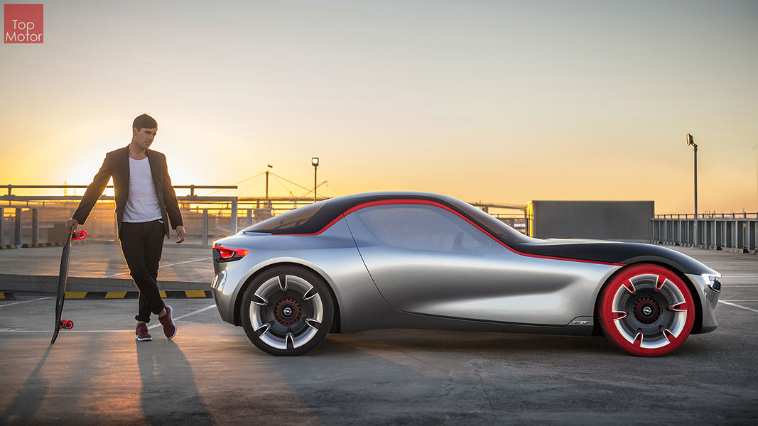 Fotos © GM Company Opel GT Concept Segundo a Opel, será assim que os automóveis desportivos serão no futuro, referindo-se ao seu novo GT Concept. Inspirado no Opel GT dos anos 1970 e no Monza Concept, o novo GT Concept adopta um conceito purista, reduzindo ao mínimo o que não é necessário. O Opel Experimental GT apresentado no salão de Genebra de 1965, um ano após a fundação do primeiro estúdio de design de um construtor europeu. A Reacção do publico foi de tal forma positiva, que passados três anos já se encontrava à venda nos concessionários. O seu design de formas estreitas, com proporções perfeitas, sem decorações desnecessárias e os seus faróis escamoteáveis foram as principais razões do seu sucesso imediato. O Novo GT Concept mostra mais uma vez o espírito pioneiro da Opel. Um carro com uma condução dinâmica, que é simbolizada pela linha vermelha que percorre horizontalmente a carroçaria, definindo as suas proporções. À frente, os pneus vermelhos, montados em jantes cujo design é idêntico as rodas dos patins, inspiram-se na moto Opel Motoclub 500 de 1920 que possuía os dois pneus na cor vermelha. O longo capô, ausência de porta da bagageira, duplo escape central e claro nome são as coisas que nos remetem para o GT original, aparte disso o novo GT Concept é muito independente e sem sinais de um design retro. Uma das características inovadoras do Opel GT Concept, são as suas enormes portas com as janelas integradas, cuja transição entre a superfície vidrada e a superfície pintada é feita de uma forma muito suave, quase imperceptível. A abertura das portas, uma vez que não existem puxadores, é feita electricamente pelo toque de um touchpad que está integrado na lista vermelha que percorre o tejadilho. Devido à sua dimensão as portas mergulham consideravelmente no arco das rodas dianteiras quando abrem, permitindo assim um bom ângulo de abertura mesmo em espaços de estacionamento mais apertados. Duas câmaras montadas por trás dos arcos das rodas, transmitem as imagens para dois monitores montados no interior do carro, um de cada lado, acabando assim com os espelhos retrovisores e com os ângulos mortos de visão. O pára-brisas estende-se até ao tejadilho, possibilitando aos seus ocupantes uma sensação idêntica à de um modelo "targa". Em termos mecânicos, o GT Concept, conta com o motor de 3 cilindros com 1.0 litros e turbo-compressor, capaz de debitar 145 cv, montado à frente em posição central, o que faz com que o seu centro de gravidade seja bastante baixo e central, ideal para um automóvel de cariz desportivo. A potência do motor turbo alimentado, é transmitida às rodas traseiras por meio de um diferencial mecânico e por via de uma caixa sequencial de 6 velocidades controlada através de patilhas no volante. Com um peso abaixo dos 1.000 kg, o Opel GT Concept acelera dos 0 aso 100 em menos de 8 segundos atingindo a velocidade máxima de 215 km/h.