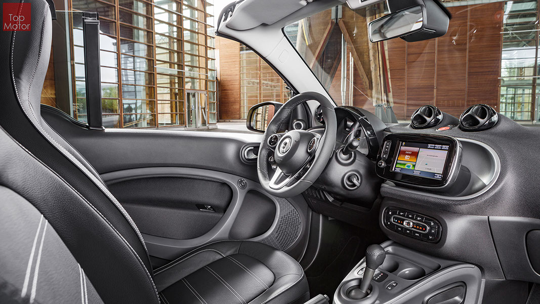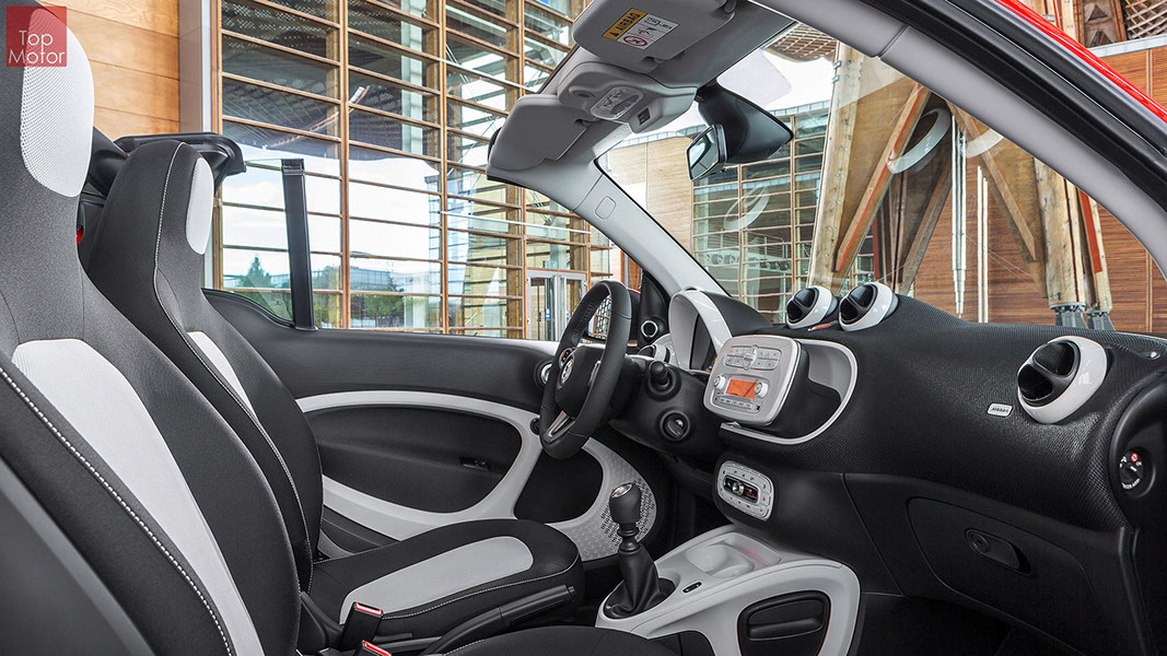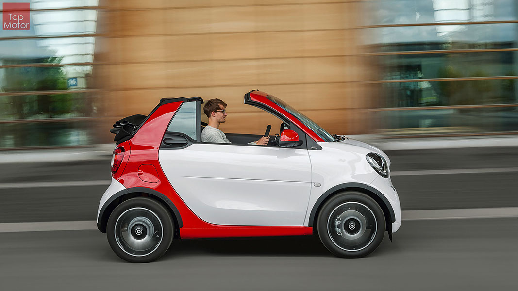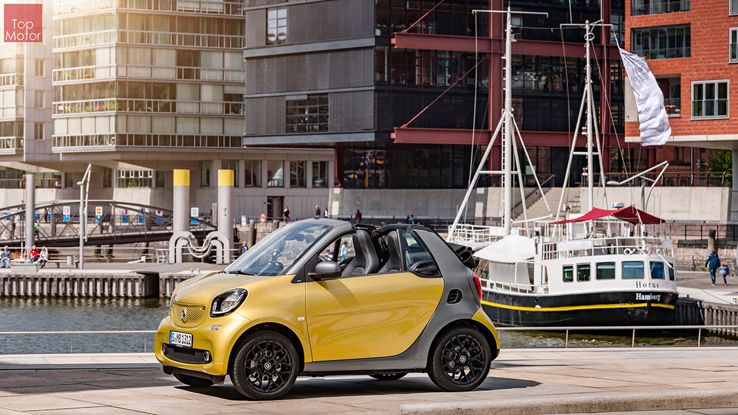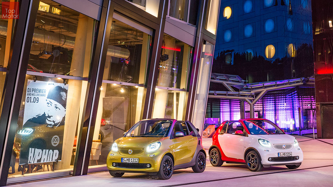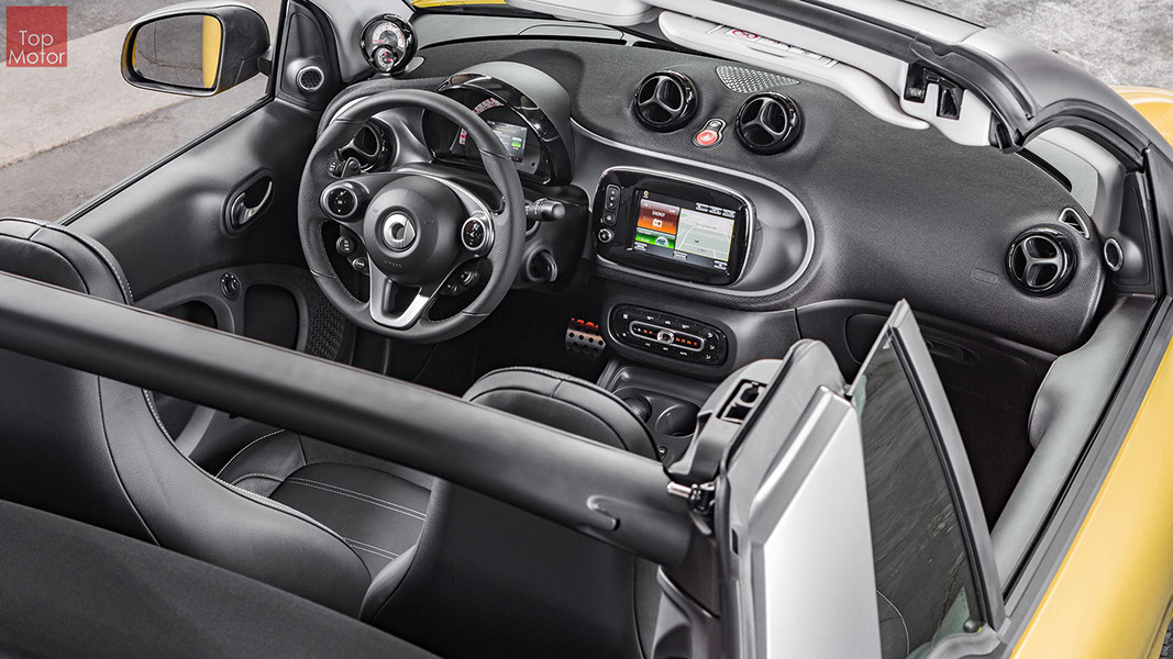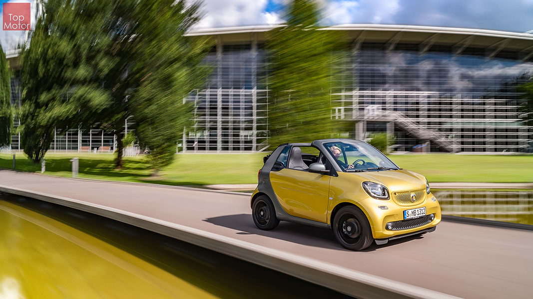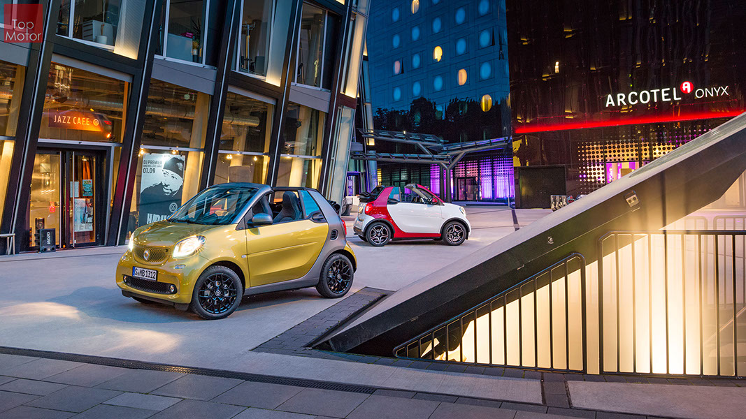 Fotos © Daimler AG Smart Fortwo Cabrio  3 em 1! Esta é provavelmente a melhor forma de descrever o novo Smart Fortwo Cabrio, pois o pequeno citadino de 2 lugares, tanto pode ser utilizado como um pequeno coupe fechado, pode apenas abrir o seu enorme tecto deslizaste ou transforma-lo num verdadeiro cabrio com a capota totalmente recolhida, podendo assim adaptar-se as diferentes condições atmosféricas ou aos diferentes estado de espírito do seu condutor. O novo Smart Cabrio é logo reconhecido como menbro da nova geração Smart, pois o se designe é em tudo igual à versão fechada, com a excepção do pilar B que é mais estreito no cabrio. São apenas necessários 12 segundos para abrir a capota "Soft Top", abertura que pode ser feita em modo totalmente automático e mesmo quando se circula à velocidade máxima, podendo também ser aberta desde o exterior do veiculo através do comando remoto. Para transformar o pequeno Smart num verdadeiro cabrio, é necessário remover manualmente as barras laterais do tecto, as quais podem depois ser guardadas num pequeno compartimento, próprio para o efeito, situado na porta da bagageira, que oferece ainda espaço adicional de arrumação, onde é possivel armazenar pequenos objectos, como por exemplo, o colete reflector, o triângulo ou o kit de primeiros socorros. A capota tem uma área total de 1.8m2, sendo que é cerca de 4% maior que a do seu antecessor, e é composta por 3 camadas. Uma camada exterior de tecido poliacrilico, uma camada interior feita numa mistura de algodão e poliester e no meio uma camada de borracha. No total a capota tem uma espessura de 20mm e o óculo traseiro é de vidro e aquecido. A resistência torcional da carroçaria foi melhorada em cerca de 15% relativamente à versão anterior, recorrendo a diversos materiais. Comparativamente ao coupe, foi ainda reforçado em locais específicos de modo a oferecer uma maior resistência da carroçaria. Para além de uma ampla utilização de aço na parte inferior, os pilares A, foram também reforçados com a introdução de um tubo em aço no seu interior. Ao nível da segurança dos ocupantes, esta é sobretudo assegurada pela tradicional "Safety Cell" da marca, capaz de absorver grandes quantidades de energia provocada pelos impactos, e de forma a satisfazer os critérios cada vez mais exigentes das normas de segurança dos crashtest, o Smart Cabrio foi também sujeito ao teste "Roof-Drop" (queda sob o tejadilho) da Mercedes, que consiste em deixar cair o veiculo num determinado ângulo, de uma altura de 50 cm sob o tecto atingindo um dos pilares A. como auxiliares à segurança o Smart conta aida com alguns sistemas até aqui reservados a classes superiores, como o ESP de ultima geração com Crosswinds Assist (assistente de ventos laterais) e o Hill Start (assistente de arranque em subida) ambos de série, e como opcionais o alerta de colisão com o veiculo da frente ou o assistente de transposição da faixa de rodagem. Em termos de motores de inicio vão estar disponíveis duas motorizações a gasolina ambas de 3 cilindros e com 71 e 90 cv, e ambos com a opção da caixa manual de 5 velocidades ou automática de dupla embraiagem. Para além dos equipamentos base das 3 versões disponíveis, Passion; Prime e Proxy, existe um vasto leque de opcionais com vista a melhorar a segurança e o conforto. O novo Smart Cabrio promete assim proporcionar o verdadeiro Joie de Vivre aos seus utilizadores.