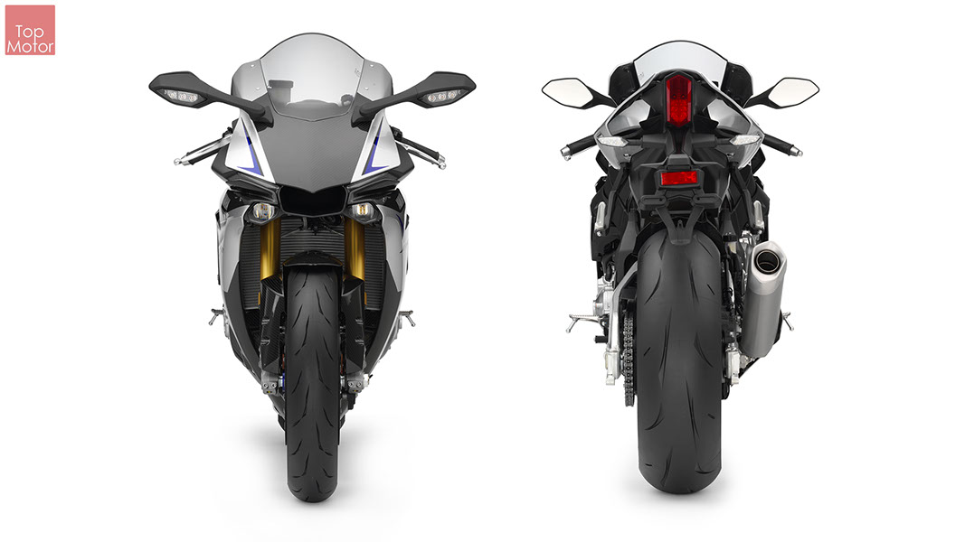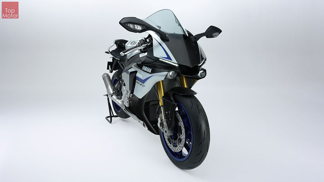 Fotos © Yamaha Motor Co., Ltd. Yamaha YZF-R1M A YZF-R1M é uma versão especial da R1 com especificações de fábrica melhoradas, permitindo a cada condutor descobrir todo o seu potencial em pista. Equipada com o motor de 4 cilindros e 998 cc a 4 tempos capaz de debitar 200 cv, um quadro construído em alumínio e magnésio e corpo em fibra de carbono, a R1M faz a fusão da tecnologia M1 com o ADN das series R. A R1M em termos tecnológicos possui do que de mais avançado alguma vez utilizado numa moto, como por exemplo o ERS (Electronic Racing Suspension) que proporciona um controlo irrepreensível, ou o IMV (Inertial Measurement Unit) de 6 eixos que possibilita um maior controlo da tracção, slides, levantamento da roda da frente e arranque. A CCU (Comunication Control Unit) com GPS, permite verificar os tempos realizados em cada volta e outros por intermédio de um qualquer tablet com sistema Android. A transmissão e de 6 velocidades sendo a parte final por corrente e a suspensão recorre a forquilha telescópica com bainhas de 43 mm e 120 mm de curso. A travagem fica a cargo de duplo disco de 320 mm a frente e de disco simples de 220 mm na roda traseira. A escolha de pneus recaiu sobre 120/70 ZR 17 M/C para a roda dianteira e 200/55 ZR 17 M/c para a roda traseira. O deposito tem capacidade para 17 litros e o peso total do conjunto é de 200 kg. A YZF-R1M é uma moto destinada essencialmente ao uso em pista, uma vez que somente ai se poderá partido de todo o seu potencial, ou pelo menos tentar...